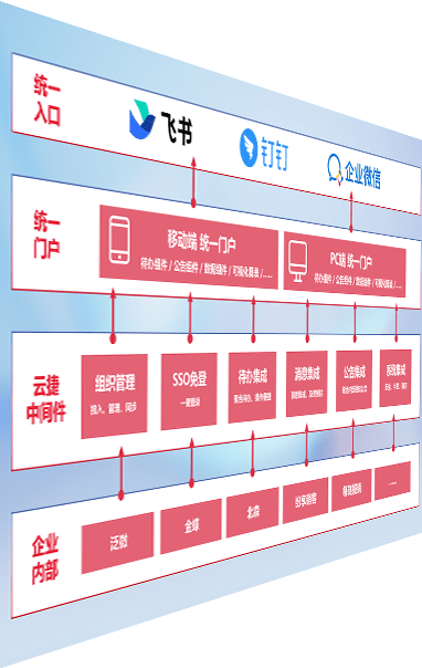 对协作平台提供支持服务,,支持企业应用与协作平台对接,,包含组织同步、、、消息集成、、、待办集成等。。支持目前主流的协作平台:钉钉、、企微和飞书。。